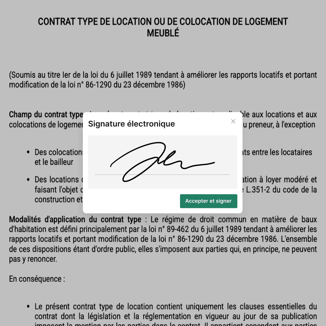 Manerty intègre un système de signature électronique légale et sécurisée. Vous et vos locataires pouvez signer directement depuis la plateforme, sans contrainte et en toute conformité avec la loi.