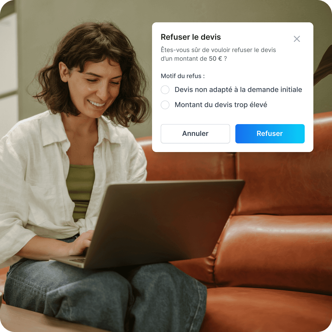 Pas de souci : depuis votre interface Manerty, vous pouvez demander un devis comparatif auprès d’un autre artisan. Parce que chez Manerty, vous restez décisionnaire de vos travaux, toujours accompagné(e) par nos experts.