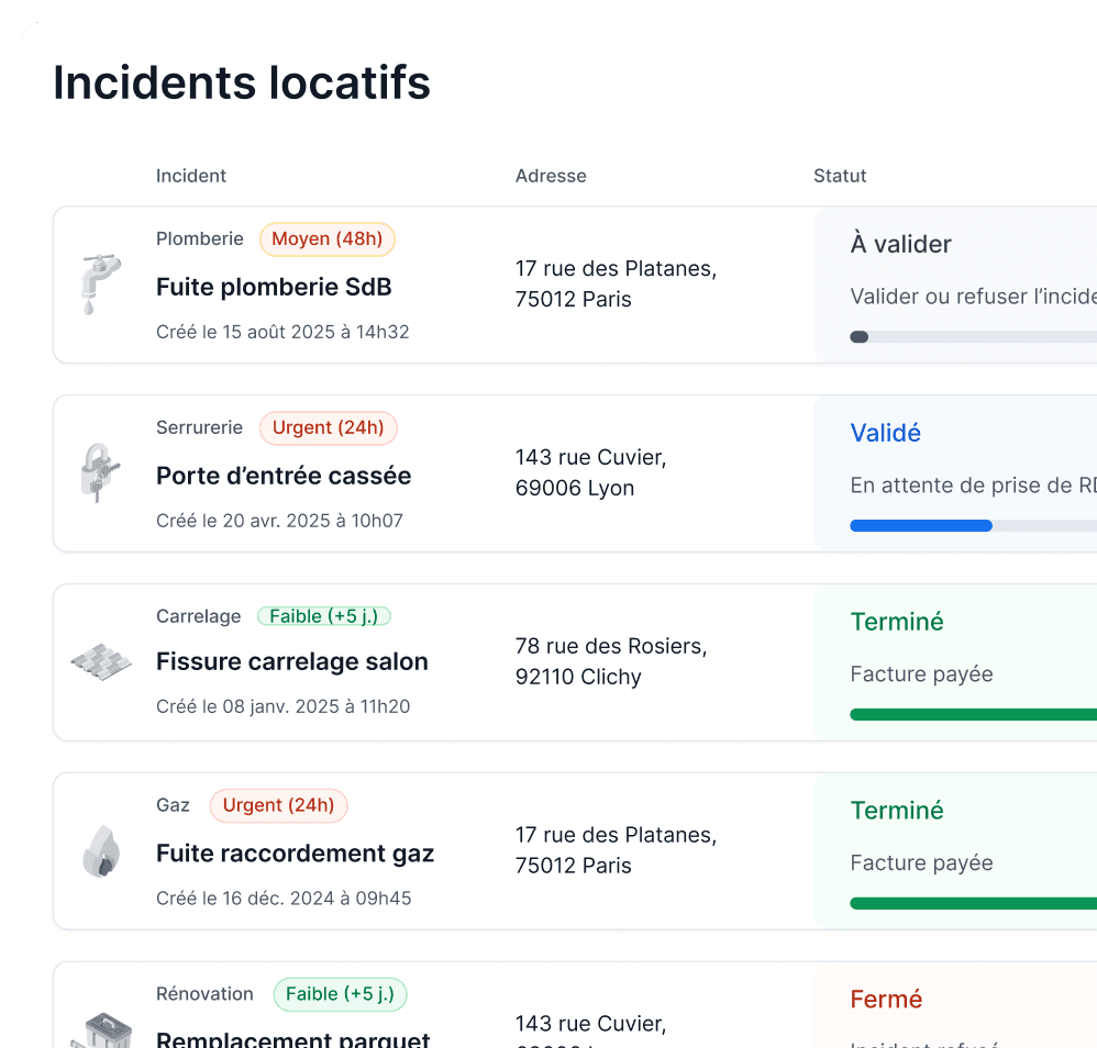 Identifiez les bons contacts : locataire, gardien, gestionnaire… tout est pensé pour fluidifier les échanges.